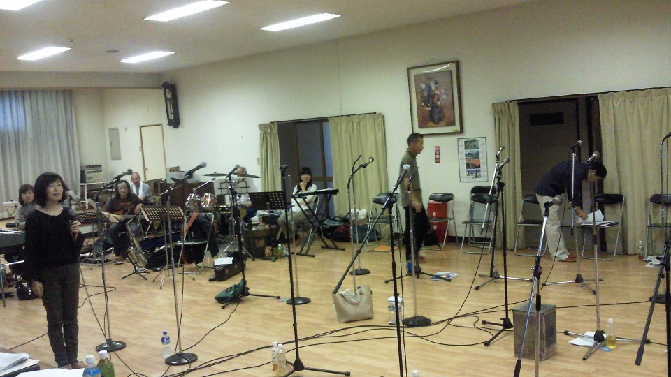 公民館の一室とは思えないほど、楽器とマイクが持ち込まれ、とても不思議な空間でした。