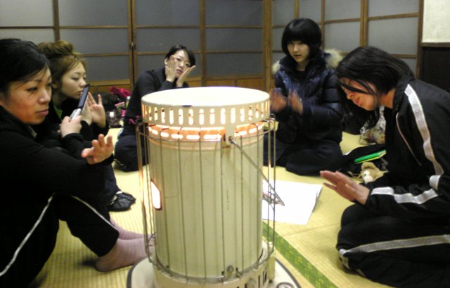 ストーブを囲んでおでんパーティー