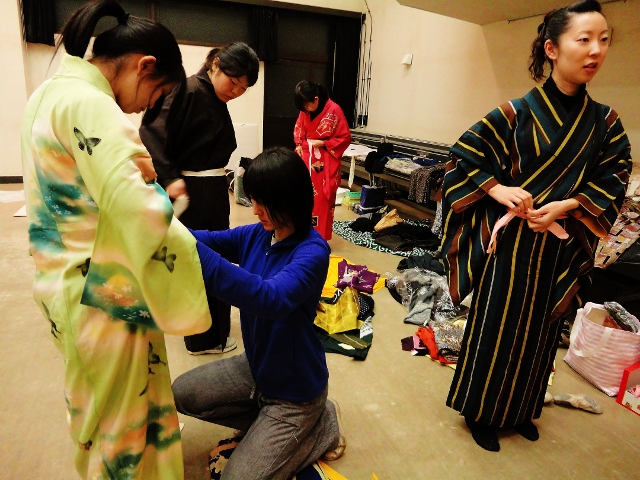アイさんを着付ける藍さん